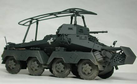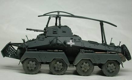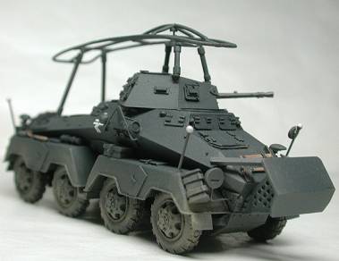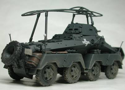 8輪重装甲車Sd.Kfz.232は、231の車体と砲塔に支柱を立ててフレームアンテナを設けたのが、外見上の大きな相違です。